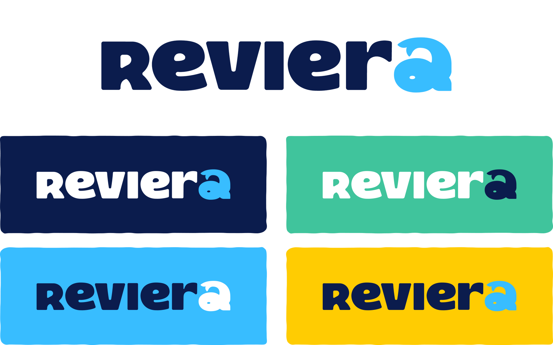 The final brand identity centres on a custom wordmark and a revitalised mascot system. The "Reviera" logo uses a specific typographic treatment where the letter "a" is differentiated to ensure the name is read correctly as a pun, rather than the standard "Riviera." This unique "a" also serves as a subtle home for the Stadtwerke’s signature whale, seamlessly linking the new facility to the parent brand.